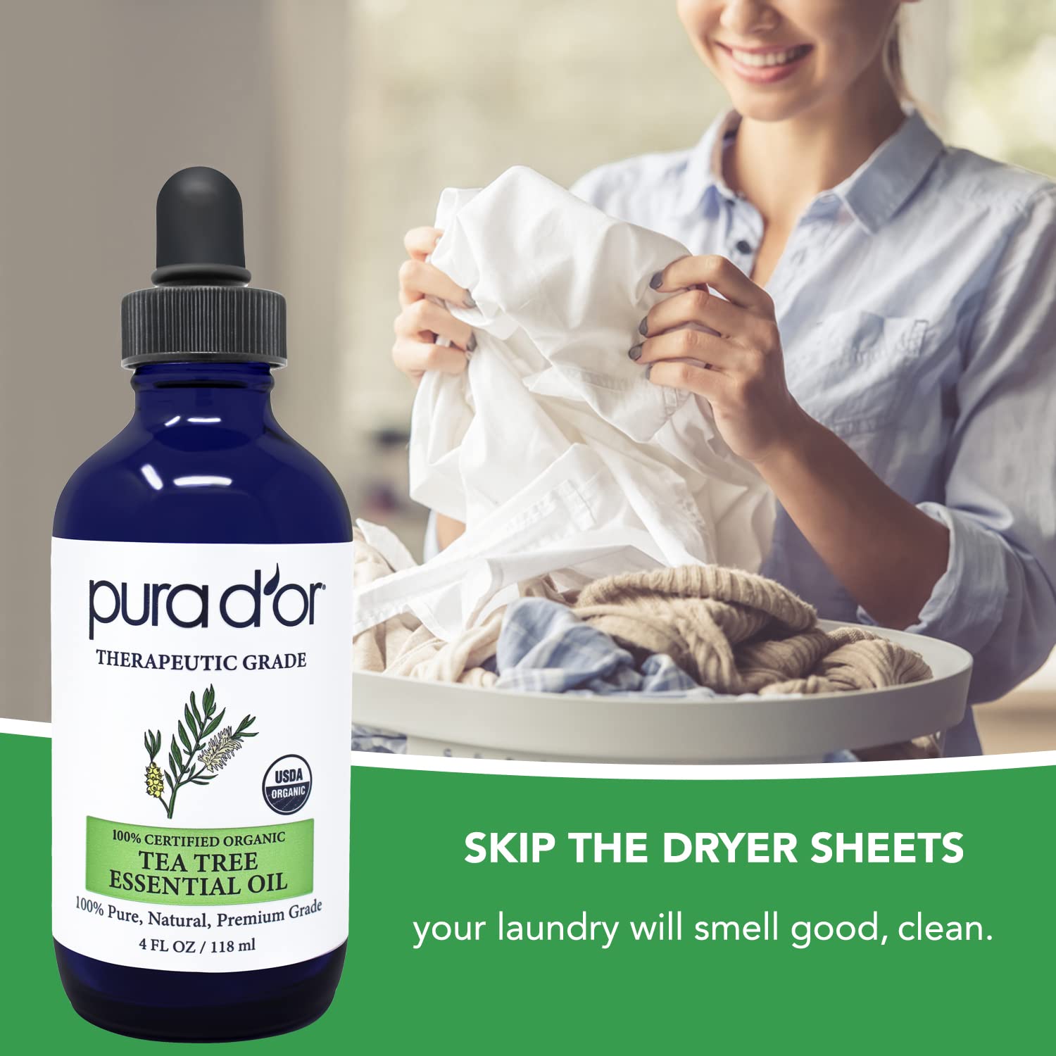 - SKIP THE DRYER SHEETS: Essential Tea Tree Oil is a great mix to your laundry detergent for a fresh therapeutic smell.