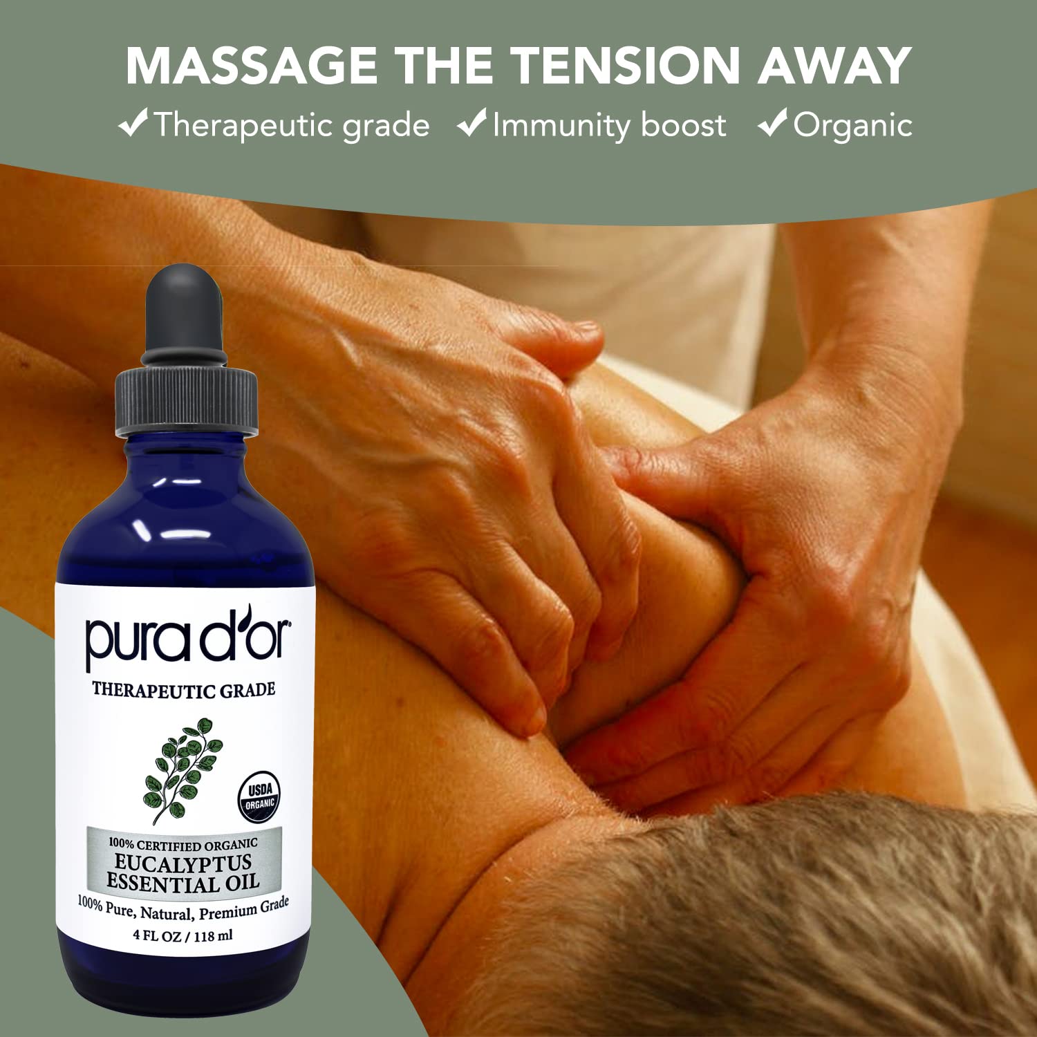 - MASSAGE THE TENSION AWAY: Eucalyptus oil is a favorite when it comes to relieving tightness in massage oil. It helps relieve tensed muscles and alleviate pressure due to exhaustion.
