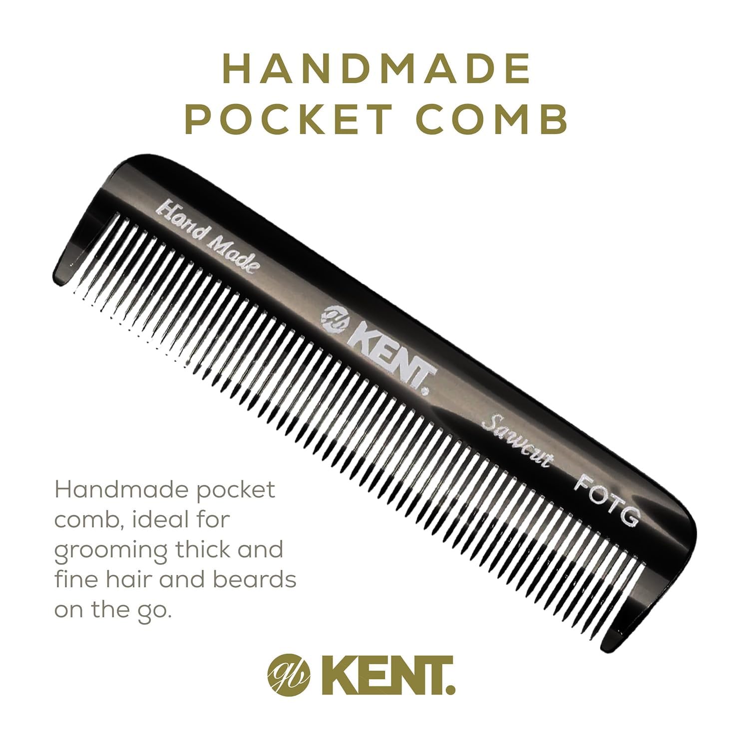 Kent FOT Black Graphite Fine Tooth Beard Comb - 4.5" Handmade Pocket Travel Comb for Men - Styling Combs for Fine or Thinning Hair, Mustache and Beard Care and Hair Care Kent