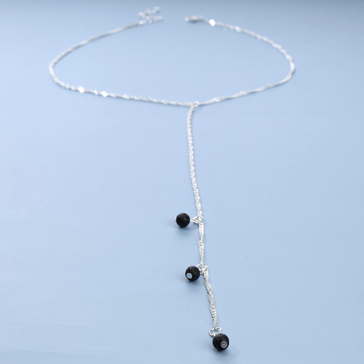Boho Layered Lava Bead Necklace Silver Stacking Y Necklace Skinny Chain Tassel Necklace Long Chain Y Lariat Necklace Jewelry for Women