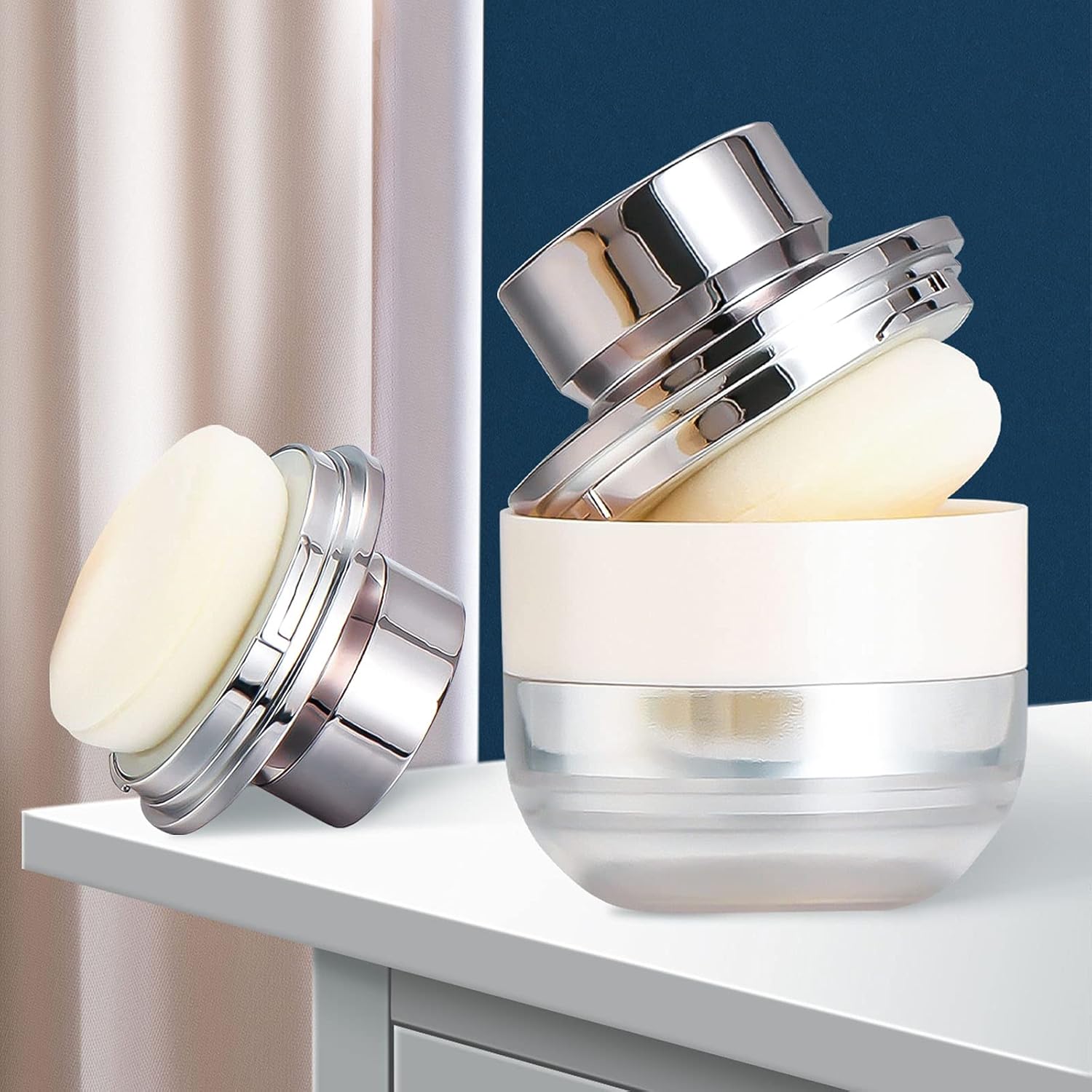 - Comestic Make-up Loose Powder Holder: Easily screws together for compact storage, The Sifter insert can be detachable,When you want to use it to separate the face cream, you can take out the sifter separately.