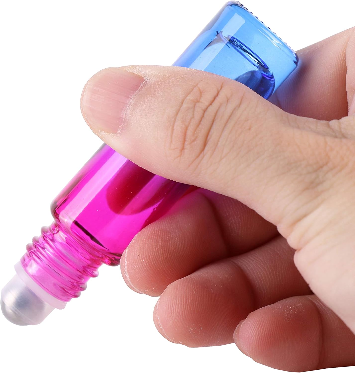 - Package includes: 4 gradient color glass bottles(4 diferent colors) +4 roller balls +6 labels +2 droppers +2 funnel +1 opener