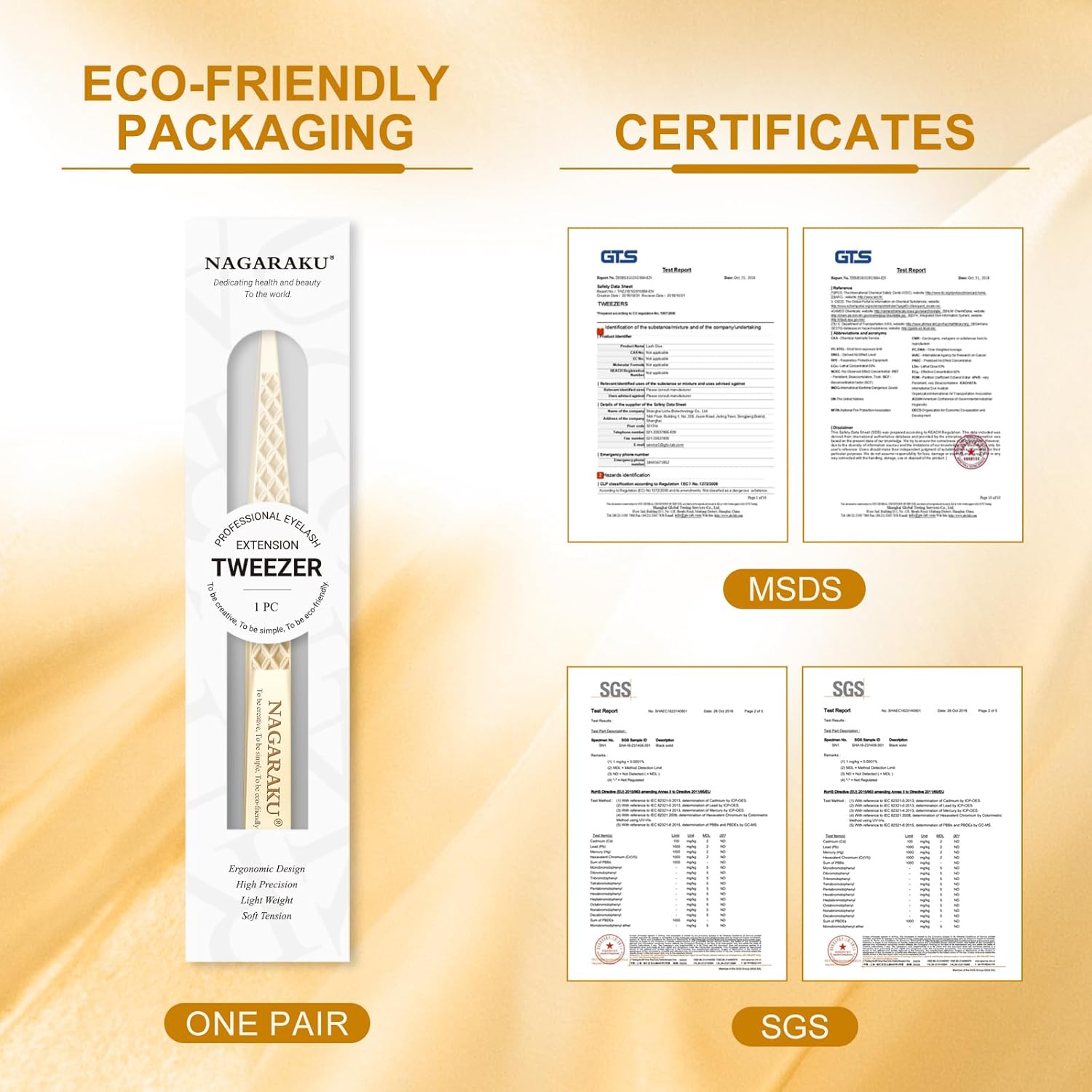 NAGARAKU Precision Fiber Tip Tweezer for Eyelash Extensions Diamond Grip Anti-Static Anti-Slip Premium Stainless Steel Pointed Volume Eyelashes Boot Tweezers Supplies with Box(80 Degree Tweezer AG-10)
