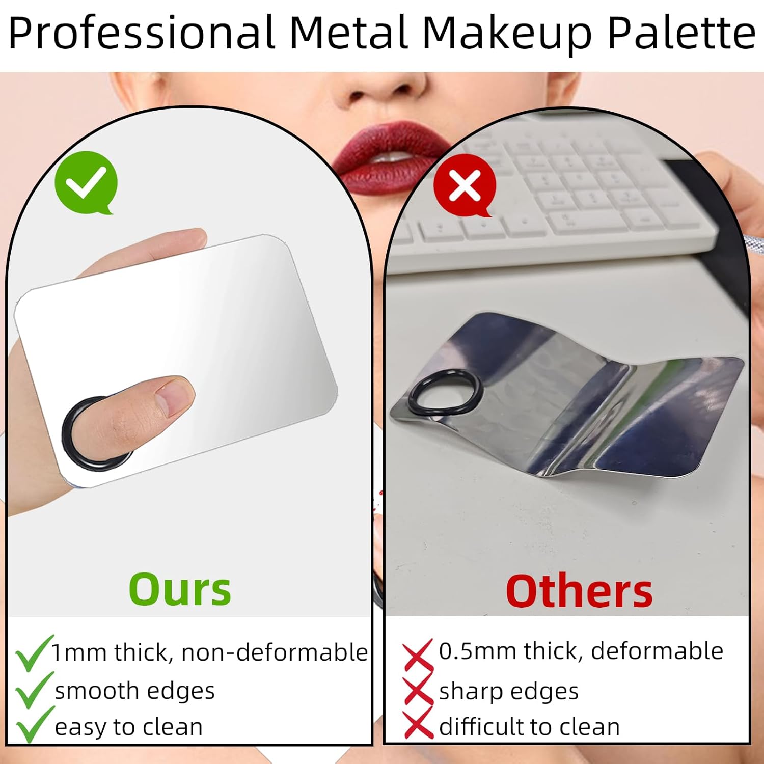- 【Easy to Clean】Makeup mixing palette Made of stainless steel with a smooth texture,This product is easy to clean and wipe.Makeup palette can be effortlessly cleaned with makeup oil or facial cleanser along with a cotton pad or tissue,Making it a perfect choice for both beginners and professional makeup artists