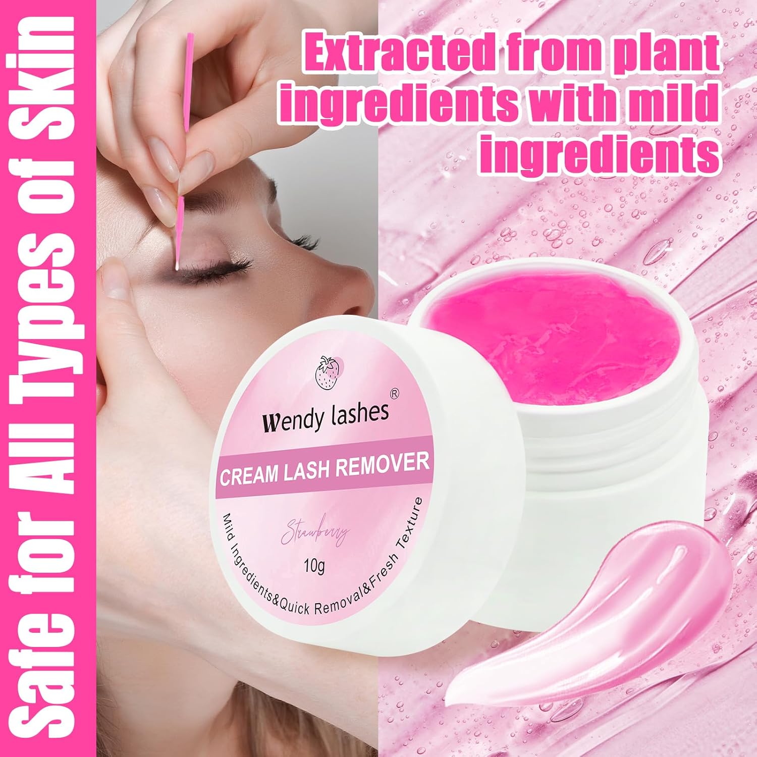 Wendy Lash Remover for Eyelash Extensions: Effectively Cluster Glue Remover Cream, Pink Strawberry
